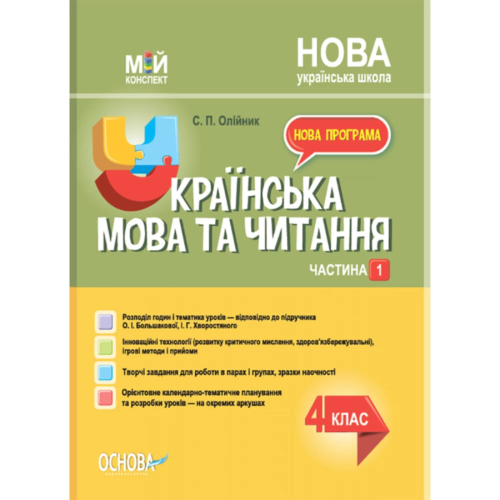 Мій конспект. Українська мова та читання. 4 клас. Частина 1 (за підручником О. І. Большакової, І. Г. Хворостяного).