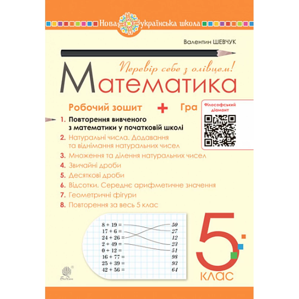 Зошит укладено відповідно до нового Державного стандарту базової середньої освіти, модельних навчальних програм Нової української школи та чинних підручників з математики, затверджених Міністерством освіти і науки України. Він призначений для повторення, узагальнення й закріплення вивченого матеріалу з метою самоконтролю та підготовки до контрольних робіт. Для учнів, учителів і всіх, хто любить математику.