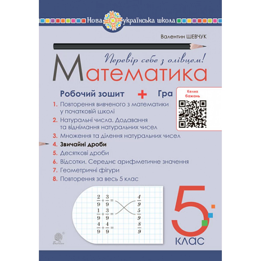 Головна 1-11 класи. Зошити. Підручники. Конспекти 5 клас НУШ 5 клас. Зошити та Альбоми Математика. 5 клас. Зошити НУШ 5 клас. Математика. Робочий зошит № 4. Звичайні дроби. Шевчук В.С. 978-966-10-6867-3