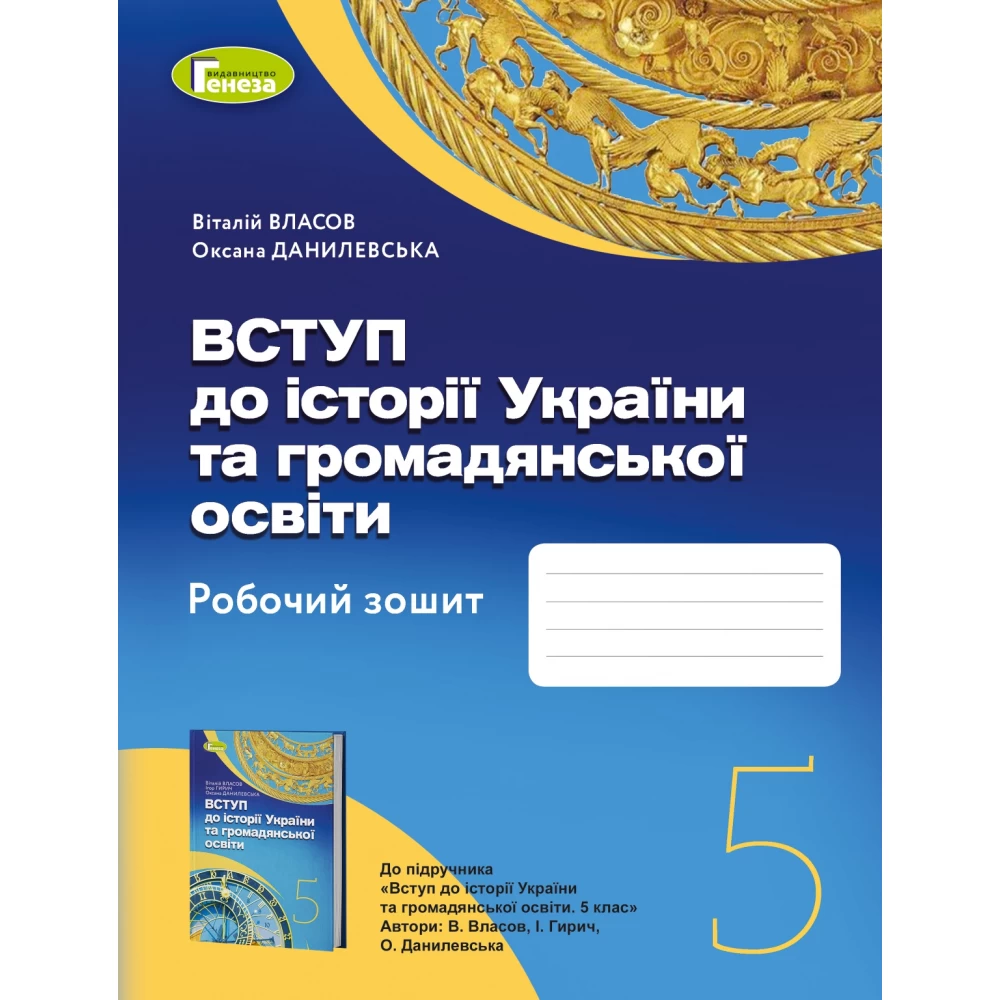 Робочий зошит створено до підручника «Вступ до історії України та громадянської освіти» для 5 класу (автори: Віталій Власов, Ігор Гирич, Оксана Данилевська). У ньому вміщено завдання для учнів з різними здібностями і навчальними можливостями, які сприятимуть засвоєнню навчального матеріалу, формуванню ключових компетентностей і наскрізних умінь, а вчителеві допоможуть здійснити поточний контроль навчальних досягнень.