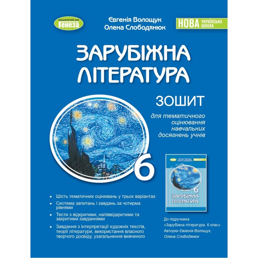 Пропонований зошит для тематичного оцінювання навчальних досягнень учнів із зарубіжної літератури призначено для перевірки знань, набутих учнями в процесі вивчення програмового матеріалу 6-го класу.